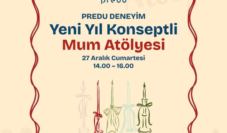 Etkinlik Detayları Etkinlik Adı: Yeni Yıl Konseptli Mum Atölyesi Kategori: Predu Deneyim Tarih: 27 Aralık 2025, Cumartesi Saat: 14.00 – 16.00 Etkinlik Ücreti: 1500 TL Yer: Predu Atölye ✨ PREDU DENEYİM | Yeni Yıl Konseptli Mum Atölyesi ✨ Yeni yılda sevdiklerinize sıradan bir hediye değil, kendi ellerinizle hazırladığınız özel bir anı armağan etmeye ne dersiniz?…
